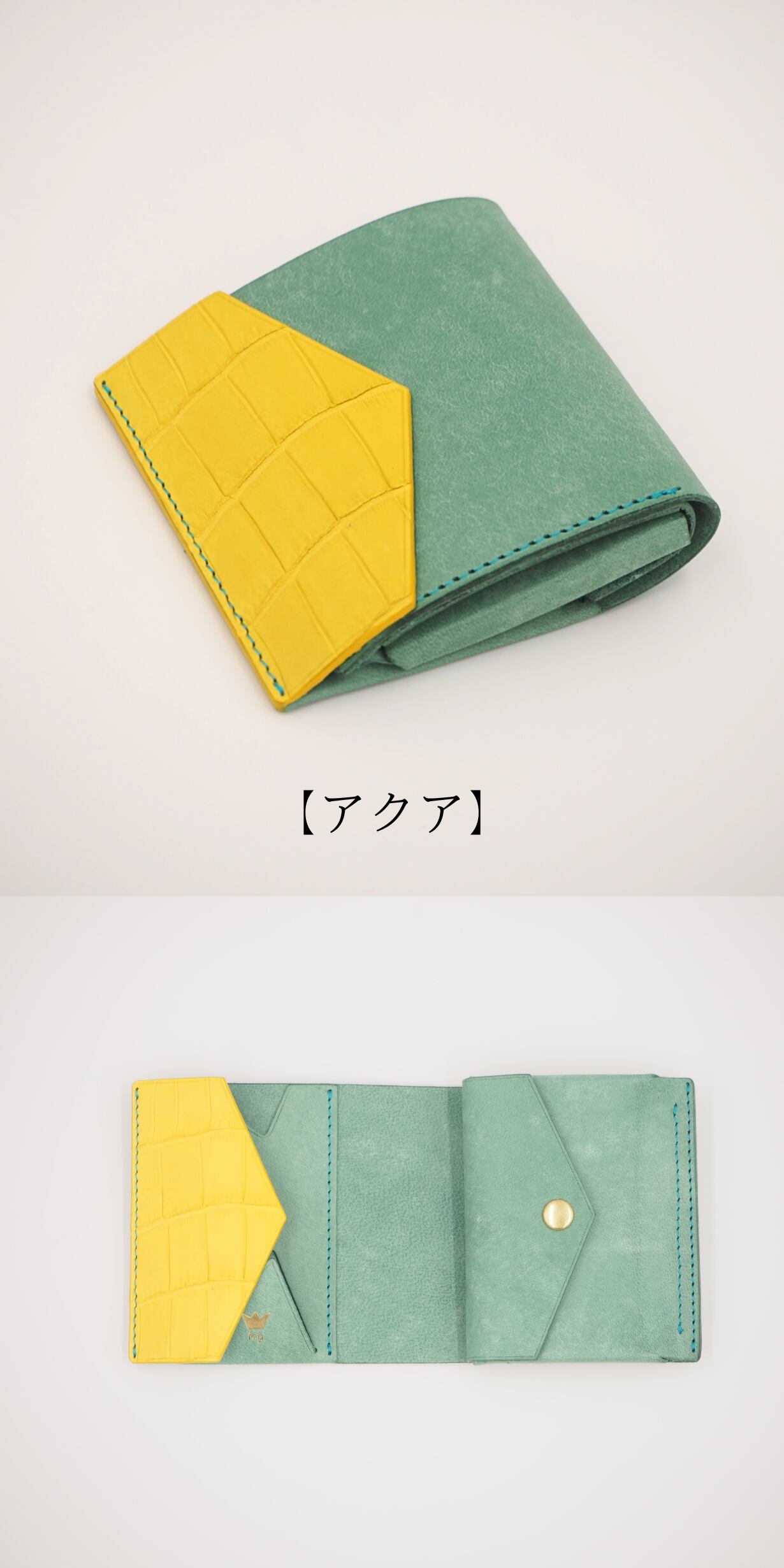 デザイン特化!ワンポイントワニ革使い!独立したカード入れで財布を閉じたままタッチ決済可能!ミニ財布Yohakuは長財布を持つ必要がないくらい大容量。