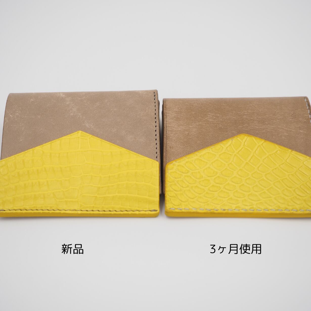 ミモザイエロー色の革はスモールクロコ(イリエワニ)!別名ポロサスクロコ。