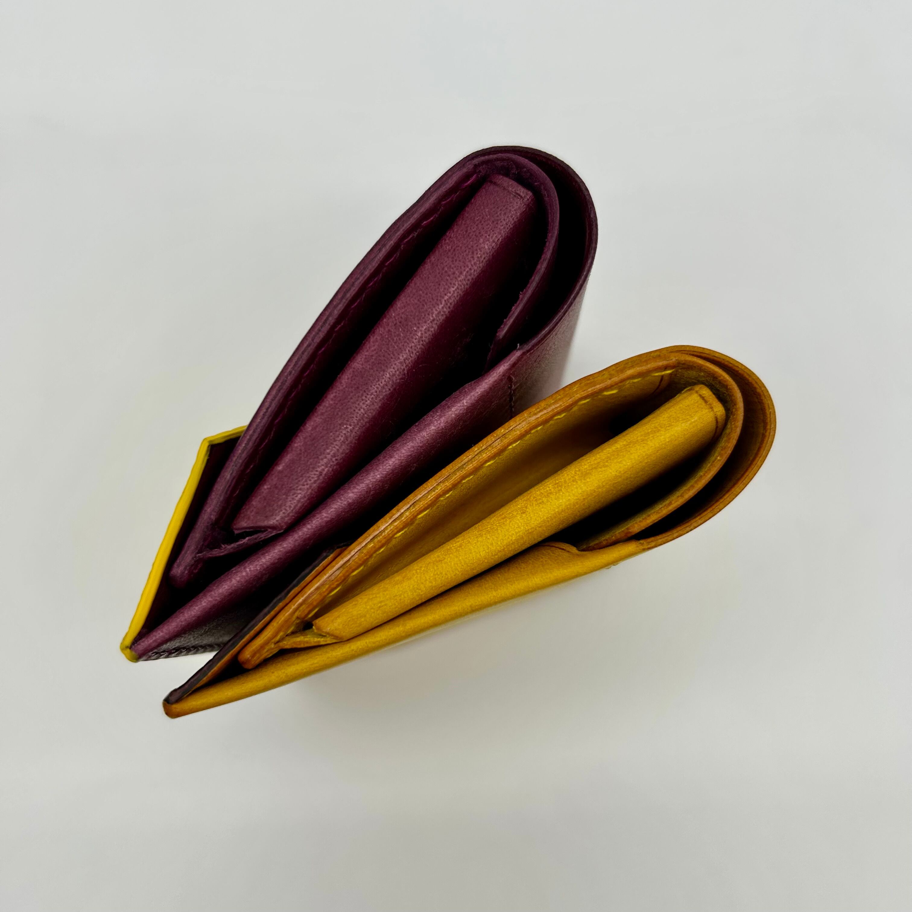 三角形を基調にしたデザイン、他のお財布になかなかない攻めたカラーリング!ステッチ(糸)も効いてます!